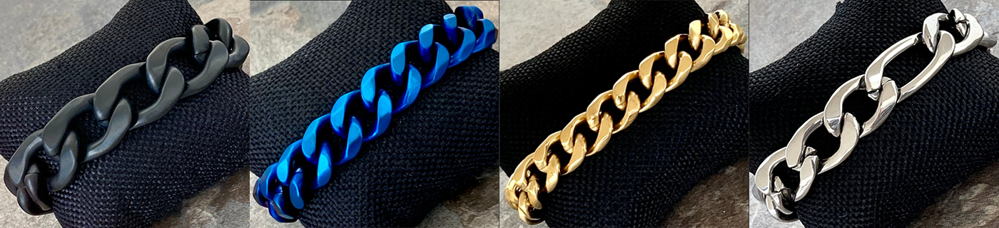 In stockSanity Jewelry's amazing Skull Bracelets, Large Link Bracelets, Motorcycle Chain bracelets for men and women. Original Proprietary Designs!