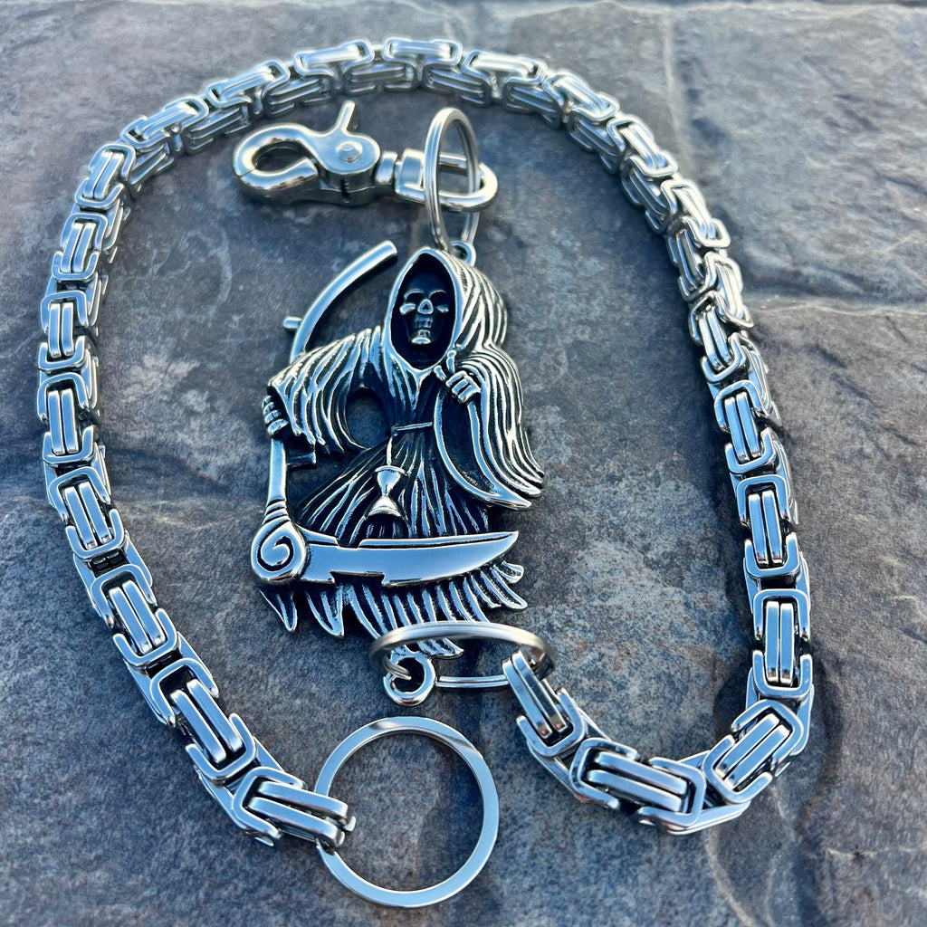 Securing your valuables has never been more stylish with our Grim Reaper Wallet Chain.