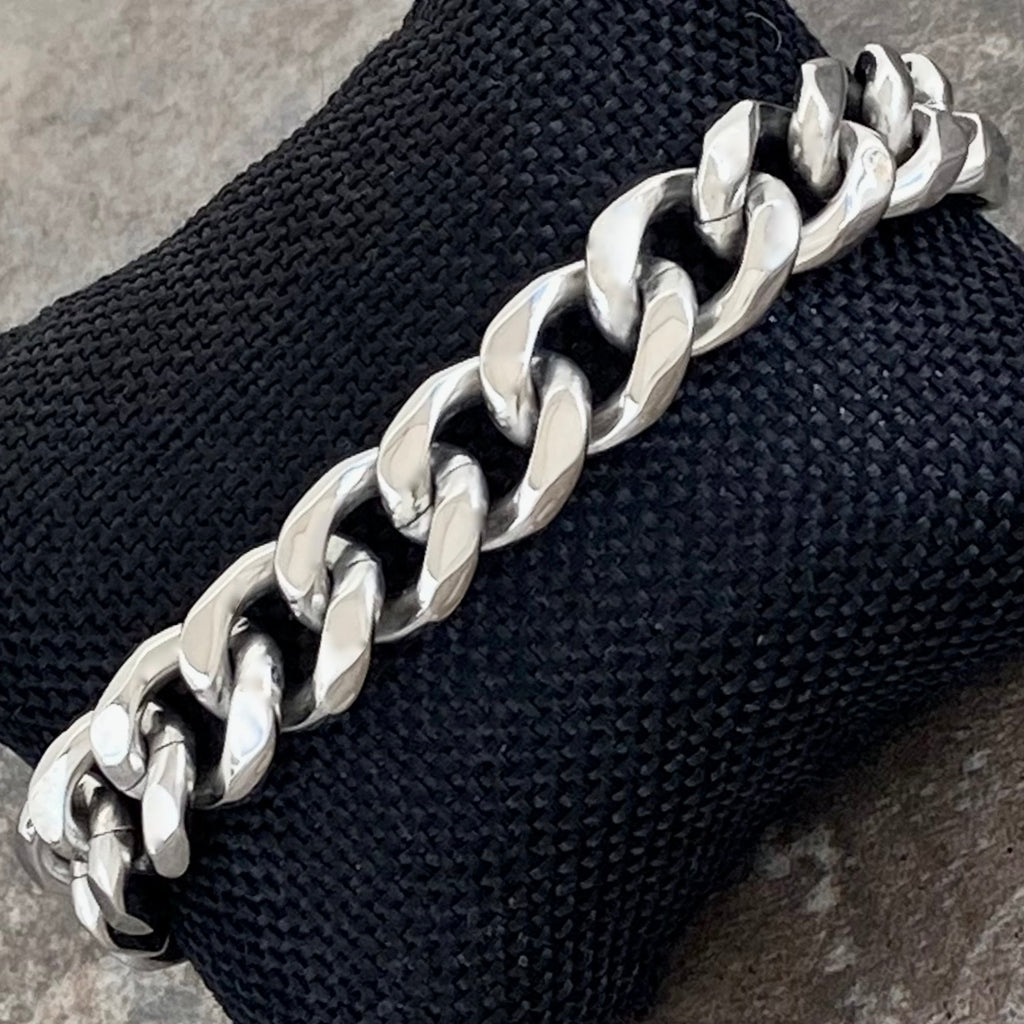 The Cuban Link Bracelet is only 3/8” wide making it lightweight, but it is solid stainless steel which ensures that it is durable enough for any lifestyle!